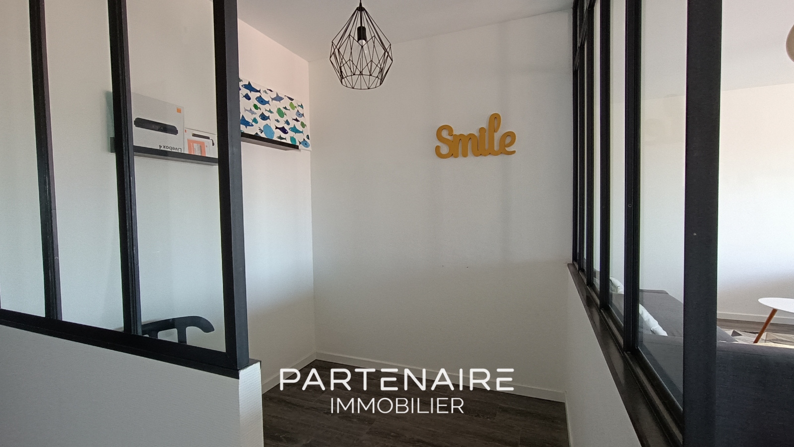 L'appartement se compose de deux chambres spacieuses avec placards intégrés, parfaites pour optimiser le rangement. Un bureau élégant, doté de cloisons en verrière, se trouve à côté du salon, offrant un espace de travail ou de lecture tout en préservant la luminosité. La cuisine moderne, aménagée et équipée, est prête à accueillir vos talents culinaires.